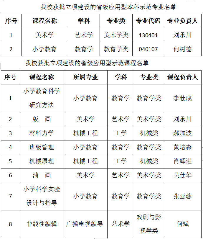 2019年1月中旬,四川省教育厅发布《关于立项建设第二批地方普通本科高校应用型示范专业及应用型示范课程的通知》(川教函〔2019〕31号),beat365美术学(专业代码130401)、小学教育(专业代码040107)两个应用型本科示范专业和小学教育科学研究方法、版画、材料力学等8门应用型示范课程获批立项建设。获批立项建设的省级应用型本科示范专业和应用型示范课程,对进一步提升beat365专业品质和专业服务能力,提高课程建设质量,深化产教融合,增强学校培养“三心四能五复合”应用型复合型人才和服务区域经济社会发展能力具有积极意义。