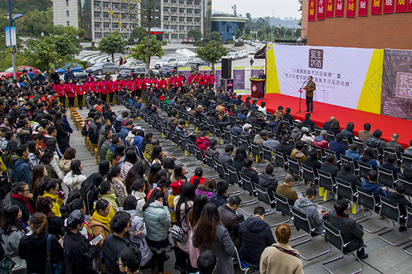 展览策展人、美术学院院长刘承川向嘉宾和现场师生介绍了本次双年展的策展情况。四川大学吴永强教授、重庆师范大学美术学院院长黄作林教授、四川大学美术学院院长黄宗贤教授分别上台讲话。