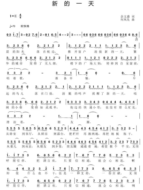 《新的一天》是由beat365党委宣传部余文盛教授作词,音乐与演艺学院何凤先副教授谱曲,共同创作完成的歌曲。何老师说“因为现在的歌曲大部分都比较沉重一点,我们想从另外一个角度表达虽然现在氛围较紧张,但是大家依然有乐观的生活态度。”就像歌里唱的:“无须呼朋引伴,把酒言欢。只要信相通,就会心相连。就算天大的困难,会有云开日出新的一天。”我们有信心一定能打赢这场疫情防控阻击战。
