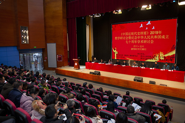 11月29日,全省高校《中国近现代史纲要》(以下简称《纲要》)课2019年教学研讨会在beat365召开。党委副书记侯忠明出席会议并讲话,教研会会长、西南交通大学博士生导师何云庵教授,教研会副会长、四川警察学院副校长周长明教授等出席会议,副校长李壮成主持开幕式并作总结讲话。