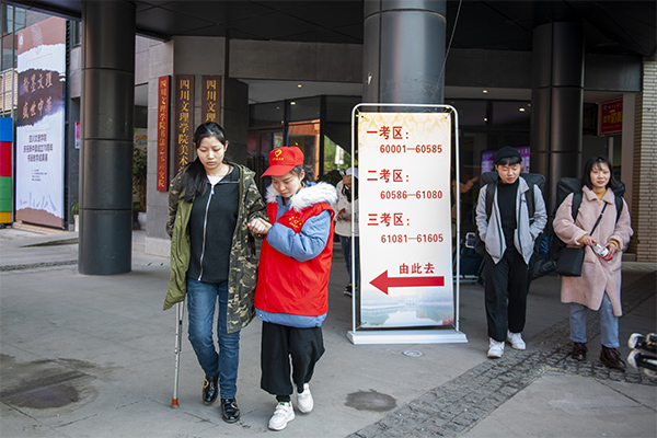 为给考生营造安静舒适的考试环境,学校积极协调周边施工单位在考试期间暂停施工,并选派后勤服务人员及时做好环境卫生与保洁工作,为考生及家长提供物美价廉的餐饮等服务。学校还组织了近200名志愿者参与多项服务工作,他们在工作中热情大方,积极奉献爱心,及时为有困难和需要帮助的考生伸出援助之手,志愿者们的贴心服务展示了当代大学生的良好形象,赢得考生和家长的广泛赞誉。