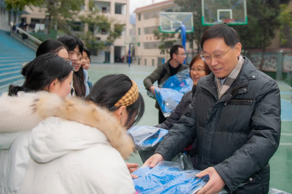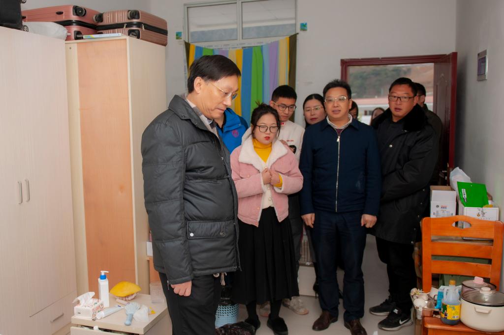 18日上午,王成端先后来到金阳县初级中学东校区、天台小学、丙底九年一贯制学校等地看望慰问顶岗支教师生,为他们送去冬日棉衣和殷殷嘱托,并走进学生寝室、食堂、教室等,了解支教学生工作和生活情况。