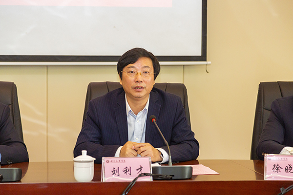 刘利才代表四川省高教保卫学会、消防协会川东分会作2019年工作总结。他介绍了川东高校保卫工作的主要情况,充分肯定一年来川东高校保卫工作取得的成绩,并就2020年工作重点作说明。