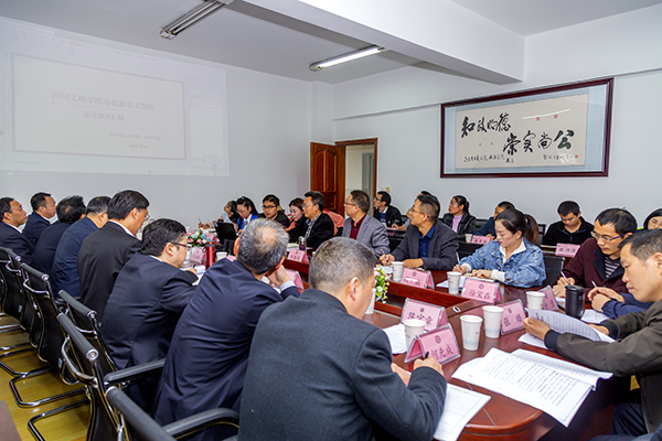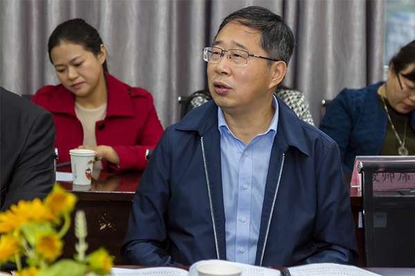 马克思主义学院院长刘长江、党总支书记刘春辉汇报近年来建设发展取得的成绩,查找分析存在的问题,并提出下一步工作打算和改进措施。