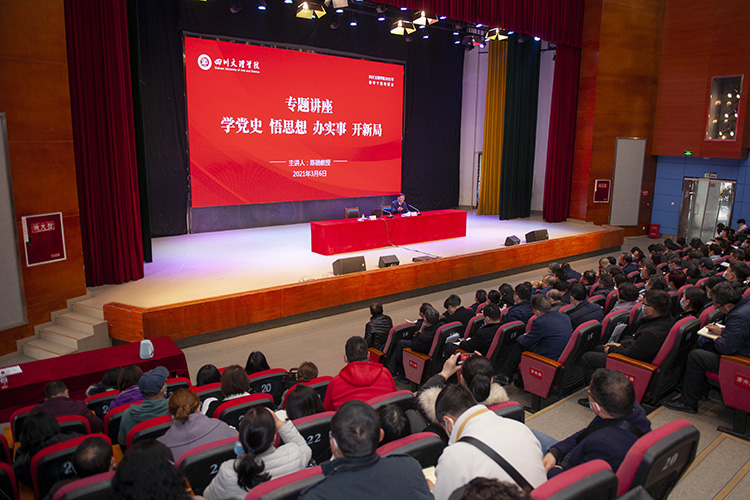 3月6日下午,beat365举行党史学习教育安排部署暨首场党史学习教育专题讲座,认真学习贯彻习近平总书记在党史学习教育动员大会上的重要讲话精神和中央、省委的决策部署,对在全校开展党史学习教育进行安排部署。党委书记王成端主持会议并作党史学习教育安排部署,四川师范大学马克思主义学院院长陈驰教授应邀作《学党史 悟思想 办实事 开新局》首场党史学习教育专题讲座。