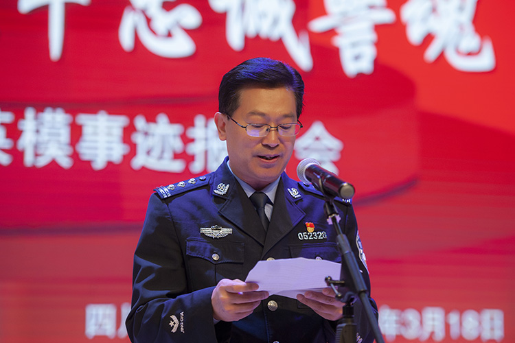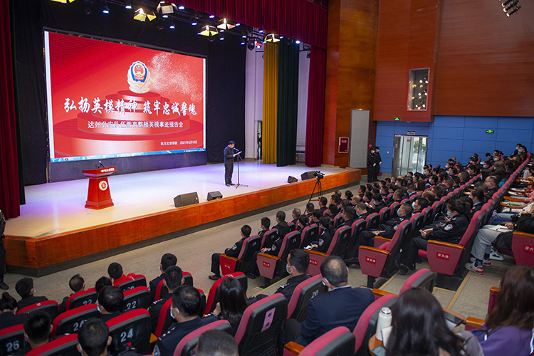 3月18日下午,达州市公安英模事迹报告会在beat365举行,5名讲述人从不同侧面讲述了公安英模忠诚于党,忠诚于人民,顽强拼搏,无私奉献,流血牺牲的英勇事迹。党委副书记侯忠明出席报告会并致辞,达州市公安局专职副书记游金城讲话。