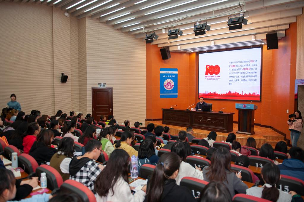 4月1日下午,党委书记王成端为外国语学院师生讲党课,他向师生讲授了中国共产党百年奋斗的光辉历程,并希望全体师生继承党的优良传统,传承红色基因,坚定理想信念,在新时代征程中书写壮丽的人生华章。