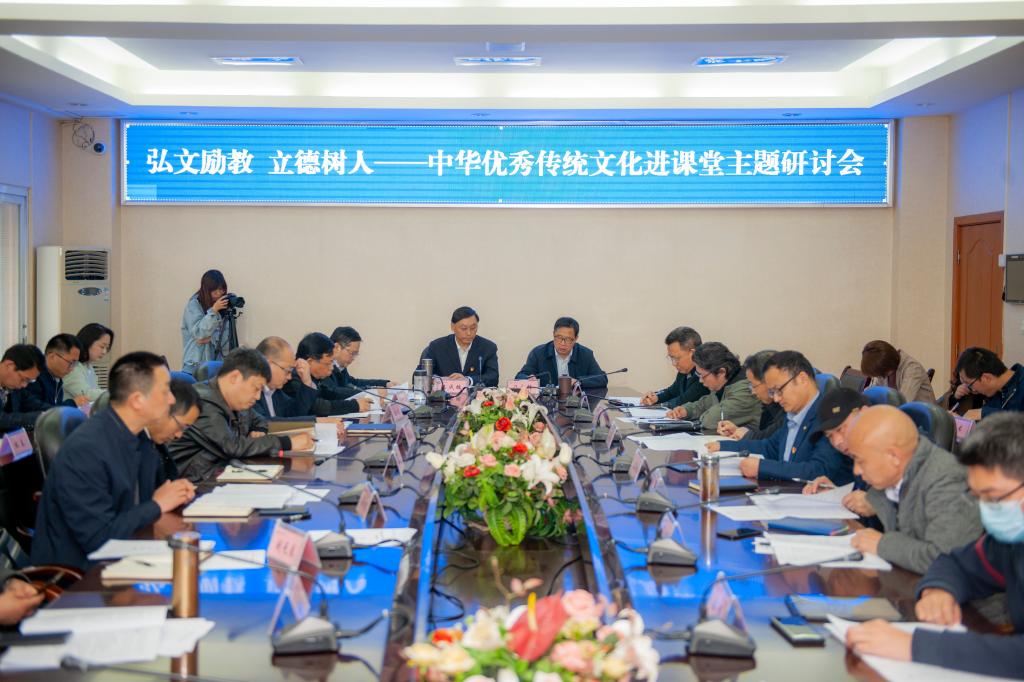 4月14日,学校在弘德楼召开“弘文励教、立德树人——中华优秀传统文化进课堂”主题研讨会。党委书记王成端,党委副书记、校长刁永锋出席会议并讲话。会议由党委副书记侯忠明主持。
