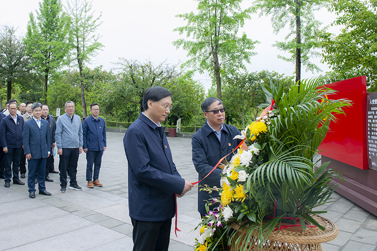 在川陕苏区红军将士英名纪念碑前,党委书记王成端和党委副书记、校长刁永锋代表全体参学干部敬献花篮,举行默哀纪念活动,向英勇牺牲的烈士表达无限哀思和缅怀之情。
