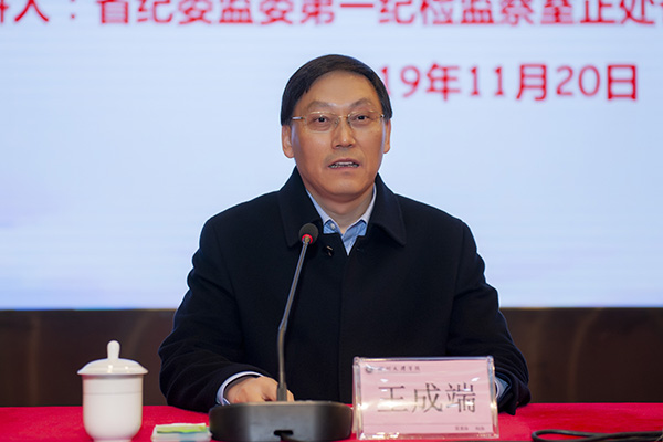 为扎实推进“不忘初心、牢记使命”主题教育,根据四川省纪委监委统一安排部署,11月20日,省纪委监委第一纪检监察室正处长级副主任周智勇同志来beat365作《坚持全面从严治党,营造风清气正的校园环境》宣讲,党委书记王成端主持宣讲会并讲话。