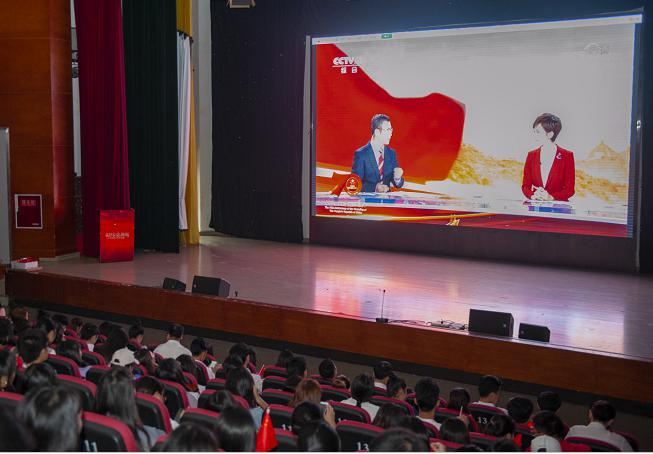 党委书记王成端说,70年来,我们党团结带领全国各族人民攻坚克难、励精图治、开拓创新,创造了彪炳史册的伟大成就。中华民族实现了从站起来、富起来到强起来的伟大飞跃。习近平总书记的讲话高屋建瓴、站高谋远,催人奋进,为实现中华民族伟大复兴指明了前进方向。我们要深入贯彻落实习近平新时代中国特色社会主义思想,不断加强高校党建和思想政治工作,不忘初心、牢记使命,着力培养德智体美劳全面发展的社会主义建设者和接班人,早日将学校建设成为特色鲜明优势突出的高水平应用型大学。