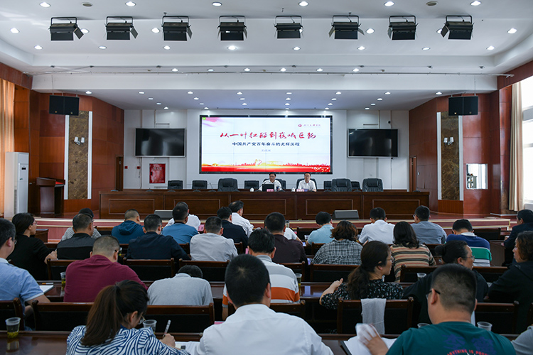 王成端为万源市党员干部作题为“从一叶红船到巍峨巨轮”的党史宣讲,他重点讲解了中国共产党在新民主主义革命时期、社会主义革命时期、改革开放时期、中国特色社会主义新时代走过的辉煌历程和取得的伟大成就,以及获得的宝贵经验等内容。