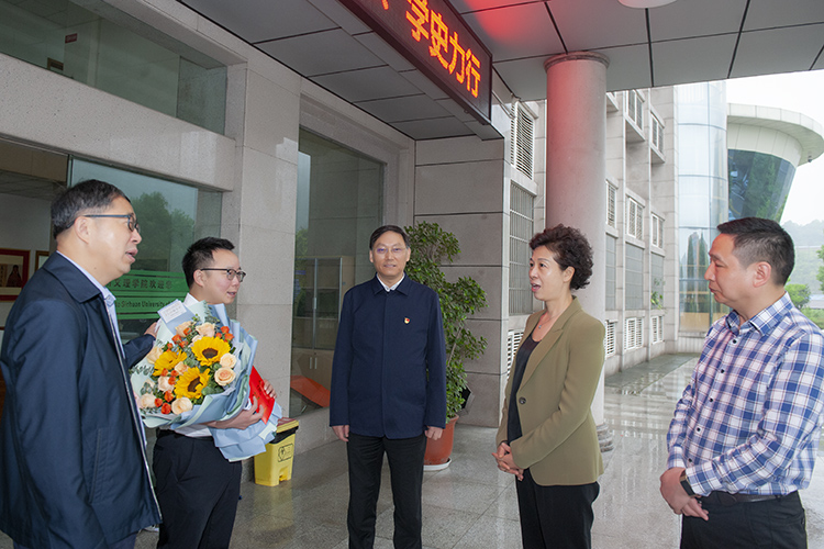 5月25日,市委常委、统战部长、市总工会主席胡杰在第五个“全国科技工作者日”前夕,到beat365慰问科技工作者代表陈光平博士。党委书记王成端,党委副书记、校长刁永锋代表学校对市委、市政府的关心慰问表示感谢。