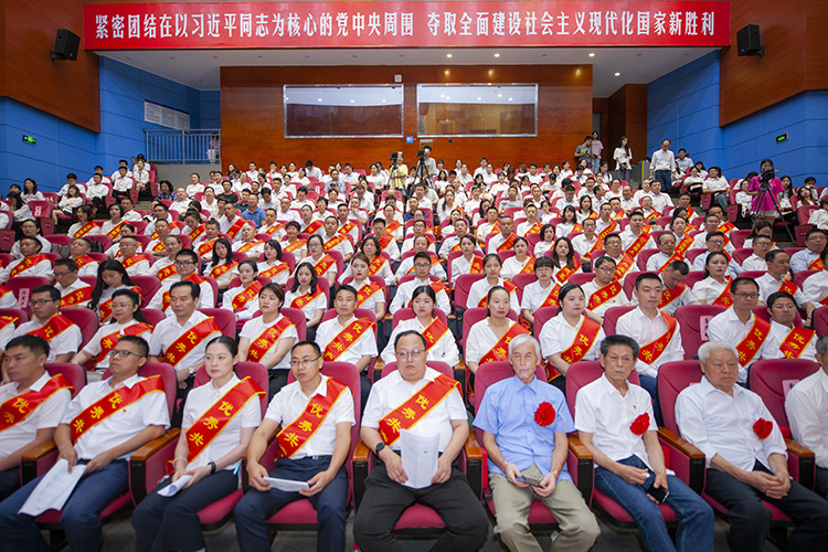 各职能部门、二级学院主要负责人,“光荣在党50年”党员代表,“两优一先”和“三全育人”先进集体、优秀个人,新党员及师生代表300多人参加表彰大会。