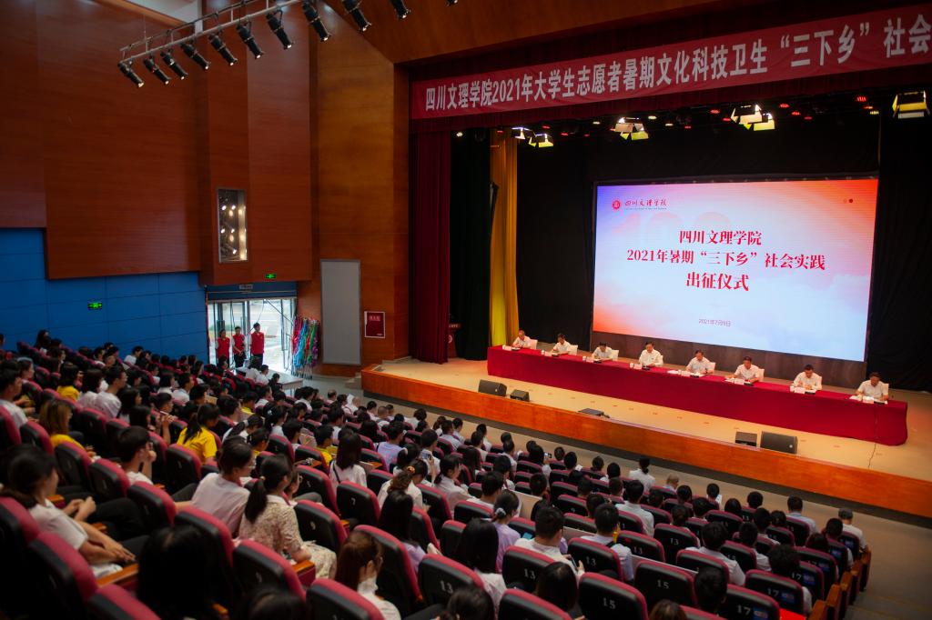 7月9日,学校在莲湖校区多功能厅举行2021年暑期“三下乡”社会实践出征仪式。党委书记王成端出席仪式并讲话,党委副书记、校长刁永锋,副校长李壮成,中共达州市委组织部副部长、两新组织工委书记刘小流,共青团达州市委副书记何宣佐等领导出席仪式,出征仪式由党委副书记侯忠明主持。