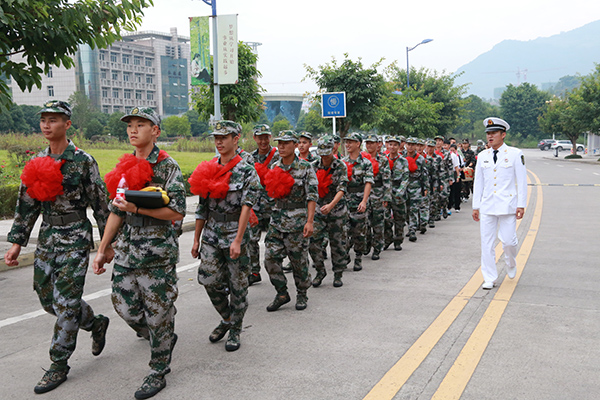 学校2019年大学生征兵工作自启动以来,经广泛宣传动员,现有57名同学被批准光荣入伍,其中有女生10人,他们来自智能制造学院、体育学院、文学与传播学院等二级学院 。