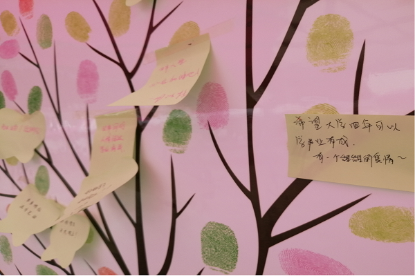 音乐与演艺学院则设置了一个许愿墙,新生们可以在此许下自己的美好愿望,祝福他们都能如愿。教师教育学院在报道点设计了一个抽奖信箱,新生完成报到后都可来抽奖,抽到的东西都非常实用。