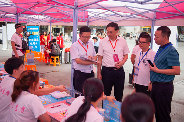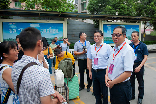 刁永锋先后来到北外徐家坝接待站点和南坝校区迎新点,听取迎新工作汇报,看望慰问参与迎新接待工作的老师和志愿者,他对大家辛勤的付出表示由衷的感谢,并希望大家要坚持以生为本,切实做好接待服务工作。