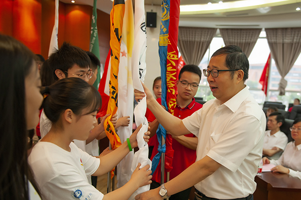 近日,beat365大学生暑期社会实践团队在莲湖校区弘德楼会议室接受党委书记王成端、校长刁永锋授旗,并奔赴四川、贵州等社会实践基地开展暑期社会实践活动。