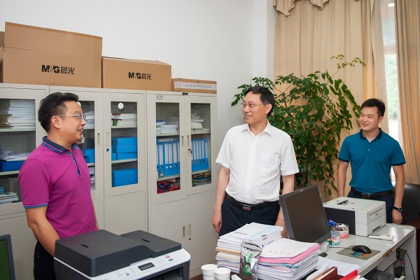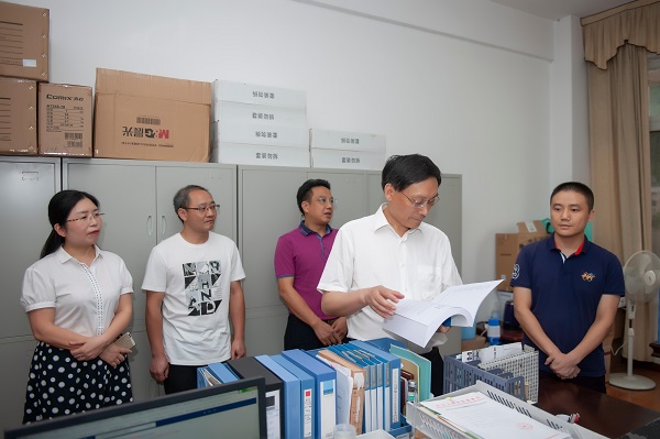 王成端一行深入教务处课程管理中心、考试中心、教学研究与建设科、实践教学科全面了解学校专业建设、课程资源建设、质量工程项目建设、实践教学、实习实训、多元化考核评价、教室管理与调度、教学运行保障等情况,与科室同志亲切交流并就重点工作进行了详细指导。随后来到评估处考察教学质量保障与运行管理情况。