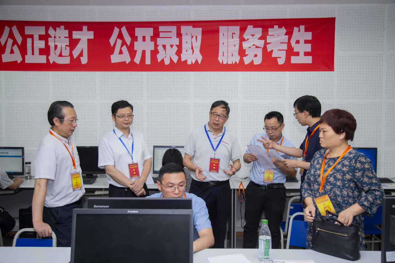 7月29日上午,校长刁永锋在党委副书记、工会主席侯忠明陪同下,率校办公室、教务处、学生工作处、保卫处、基建处、后勤服务处、博大资产管理有限公司等部门负责人及相关同志到学校招生录取现场检查指导2019年本科招生录取工作,了解招生录取工作进展情况,并慰问招生录取工作人员。