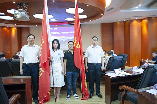 党委书记王成端和党委副书记、校长刁永锋为支教团授旗