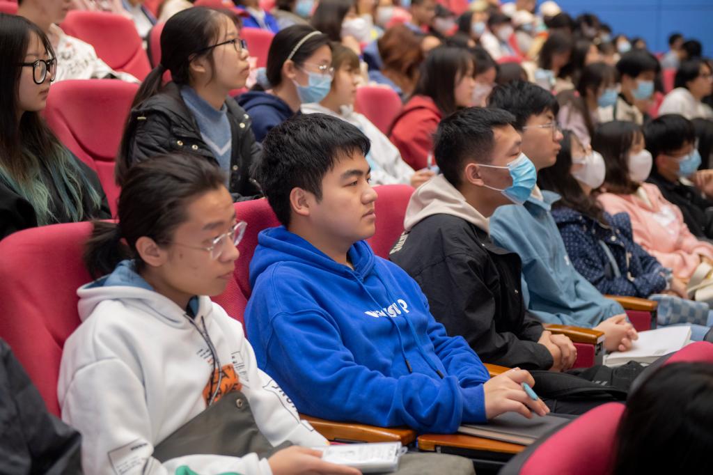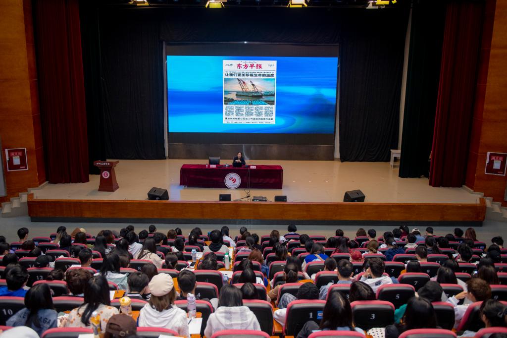 党委宣传部、党委互联网思想政治工作部、文学与传播学院、外国语学院、数学学院、美术学院师生代表,大学生通讯社、融媒体中心部分学生聆听讲座。