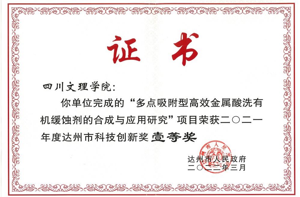 由党委书记王成端教授牵头,化学化工学院研究团队联合达州市质量技术监督检验测试中心、四川轻化工大学共同完成的“多点吸附型高效金属酸洗有机缓蚀剂的合成与应用研究”荣获一等奖。由智能制造学院郝加波教授主持完成的“基于视觉信息的机械臂远程操作系统”荣获二等奖。