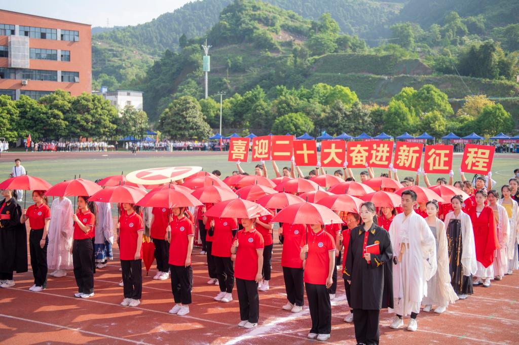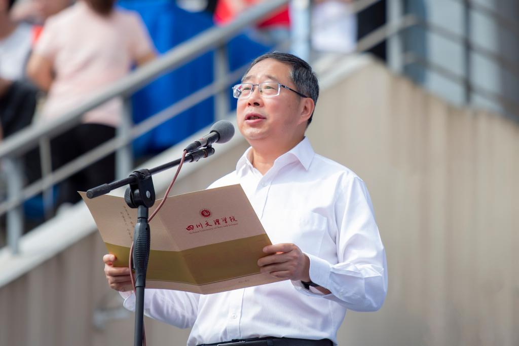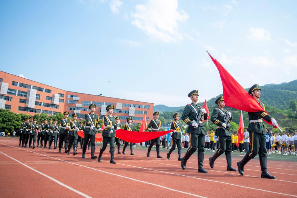开幕式举行了隆重的升国旗和升校旗仪式,全体师生齐唱国歌、校歌,嘹亮的歌声响彻校园,展现了文理师生激昂奋进、斗志昂扬的精神风貌。