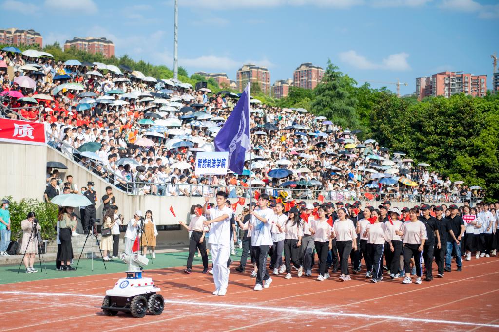 4月27日,beat365第十二届田径运动会在莲湖校区体育场隆重开幕。党委书记王成端出席开幕式并宣布田径运动会开幕,党委副书记、校长刁永锋致开幕词,党委副书记、体委会主任侯忠明主持开幕式,副校长徐晓宗、朱兴华、邓杰、程碧英及各职能部门、二级学院负责人出席开幕式。
