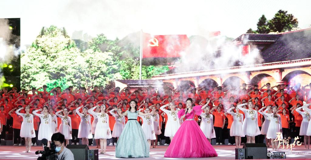 第一篇章主题是“党恩颂歌”,在这个篇章分别为大家带来了《妈妈教我一支歌》《映山红》《我爱你中国》等经典曲目以及演诵节目《百年·正青春》。