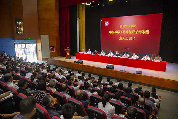 4月25日下午,beat365本科教学工作审核评估专家组意见反馈会在莲湖校区艺术传媒大楼多功能厅举行。