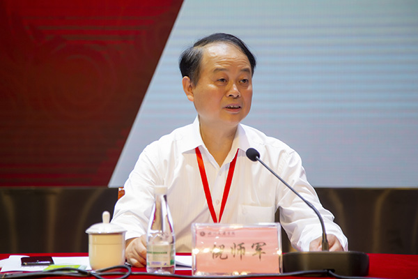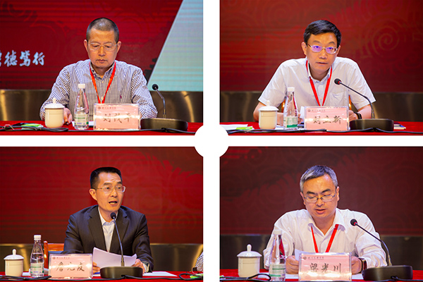 专家组组长倪师军教授主持会议并反馈审核评估总体情况,省教育厅高教处处长、二级巡视员杨亚培讲话,党委书记王成端表态发言。