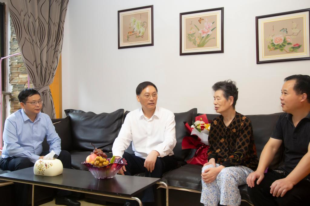 在86岁高龄李景荷家中,王成端与李老师促膝交谈,详细了解她的身体情况、生活起居。看到她精神矍铄,王成端非常高兴,叮嘱离退休工作处要对李老师倍加关心照顾,让她安享幸福晚年。