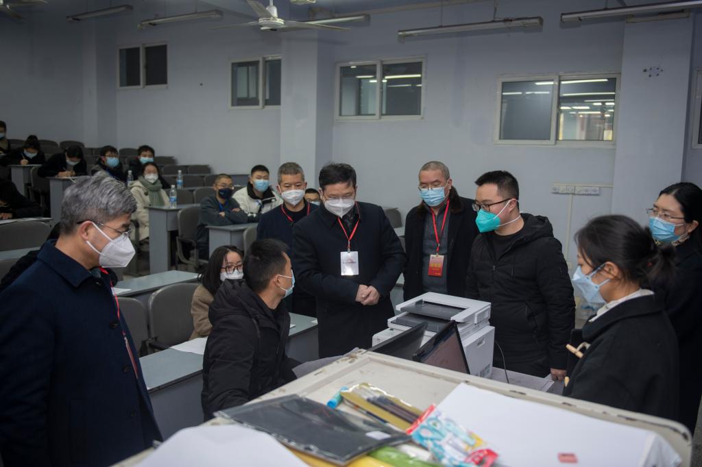侯忠明一行先后对候考室、抽题室、备课室以及各考场进行了一一巡视,表示本次考试准备充分、组织有序,有力彰显了学校的组考水平和能力。同时,巡考中,侯忠明强调教师资格考试属于国家教育考试,是全国规模最大、影响最广泛的职业资格考试,是国家选拔教师的重要环节之一,一定要把握细节,做好统筹,岗位到位、职责到人,确保高质量完成本次考试工作。