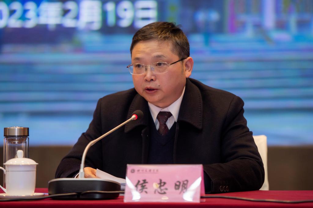 侯忠明简要回顾2022年工作取得的成绩,深入分析当前学校发展所面临的形势、机遇和挑战,阐释2023年党政工作要点的总体思路、工作路径和相关的重点工作落实举措。