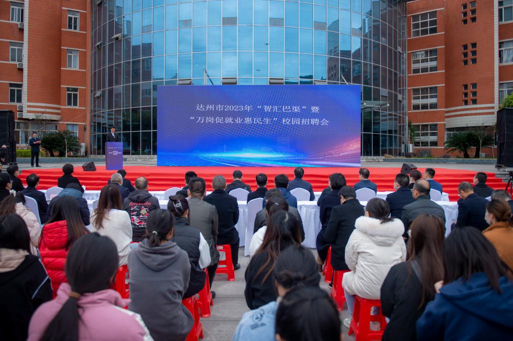 3月17日,2023年春季校园双选会暨达州市“万岗促就业惠民生”活动在莲湖校区音乐广场举办。达州市委常委、副市长崔大鹏,党委书记王成端,党委副书记、校长侯忠明及达州市人社局局长朱宏尚等市校领导、嘉宾和学校相关职能部门、二级学院负责人参加活动,市政府副市长刘政同志主持启动仪式。