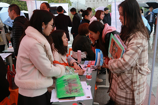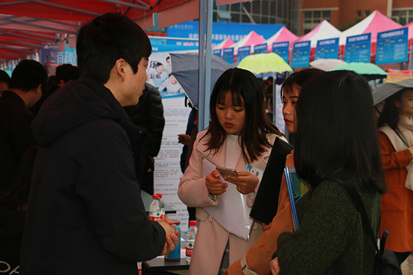 11月27日上午,beat365莲湖校区音乐广场上人头攒动、秩序井然,2019届毕业生秋季校园双选会在此举行,有很多像孔德林这样的同学前来寻找就业岗位和信息。中国铁路局、新疆教育局、深圳创维重庆分公司等来自全国11个省市的240余家用人单位为beat365毕业生带来了5000余个就业岗位。
