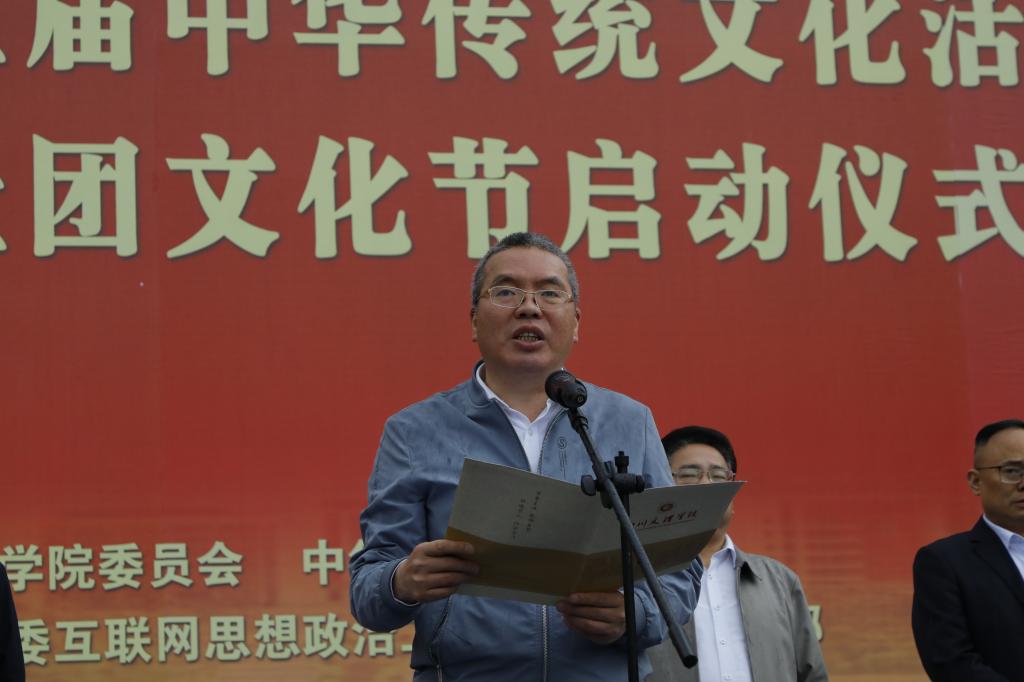 中华传统文化学院院长王赠怡教授在启动仪式上致辞,他指出中国传统文化博大精深,学习和掌握其中的各种思想精华,对树立正确的世界观、人生观、价值观很有益处,在学校党委的坚强领导下,推动中华优秀传统文化进教材、进课堂、进头脑,力争把中华传统文化学院建设得更具特色。社团优秀指导教师代表程子彪老师,优秀社团负责人代表陈洁、中华传统文化爱好者优秀代表王章玭分别交流发言,分享社团工作心得及对中华传统文化的感悟,倡议全校师生大力弘扬中华传统文化,积极参加社团活动。