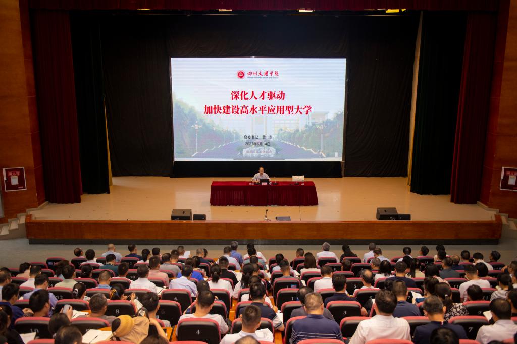 黄涛结合学校实施“人才强校”战略,肯定了人才队伍工作取得的成效,深入分析了人才队伍现状和人才队伍建设的不足,就做好人才工作应把握好人才和科技、人才和学科、人才和条件、人才和制度及不同人才群体等五个关系进行了深刻阐释。针对如何努力培养堪当重任的高素质专业化干部人才队伍,他说,学校当前正处于推动高质量内涵式跨越式发展、建设高水平应用型大学的关键时期,面对新的形势、新的挑战和新的任务,迫切需要打造一支担当作为、堪当重任的高素质专业化干部人才队伍,这是关乎学校未来发展的长远大计。一是要强化理论武装,坚定理想信念。持续深入学习领会马克思主义理论经典,筑牢信仰之基;持续深入学习领会习近平新时代中国特色社会主义思想,把稳思想之舵;持续深入学习贯彻习近平总书记关于教育的重要论述,定好奋进之锚。二是要坚持苦练内功,不断提高本领。始终坚持练就推动高质量发展本领、始终坚持练就服务师生群众本领、始终坚持练就防范化解风险本领、始终坚持练就斗争本领。三是要激发队伍合力,提升能力水平。不断锻造过硬的政治素质、不断筑牢精湛的业务能力、不断练就高超的育人水平。四是要营造良好环境,助力人才成长。着力给足思想理论的“温暖阳光”、着力给足能力建设的“充足水分”、着力给足系统培养的“肥厚土壤”。