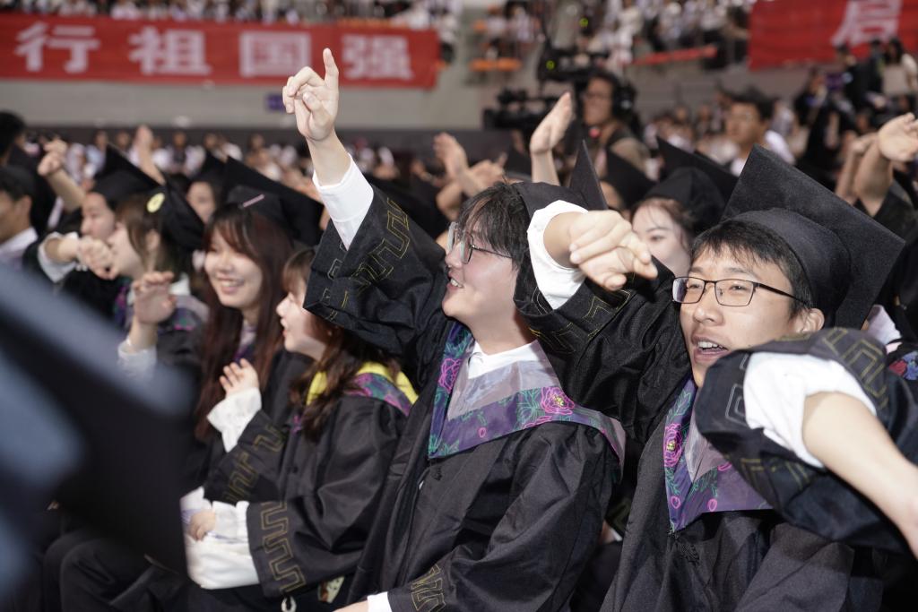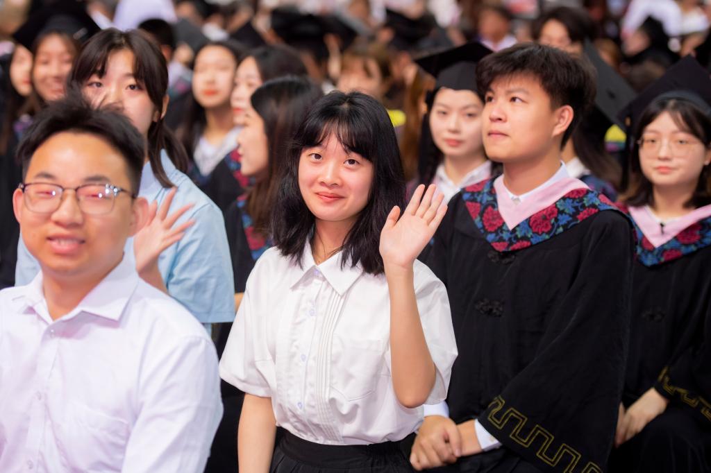 今年学校2023届共有4000余名本专科生顺利毕业。典礼开始前,主会场外毕业生们忆往事、畅未来,会场内《起风了》《再见》《海阔天空》等精彩暖场演出,“毕业快乐 共赴山海 放飞梦想”的欢呼声与热烈的掌声将现场气氛瞬间点燃。