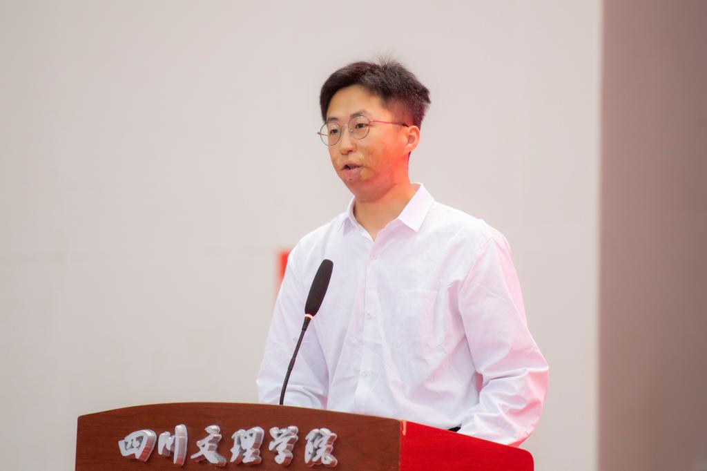 “只有经历了黑暗,才会更加明白光明的重要性。每一条充满挫折的道路,都能成为你成功的基石。”2019级数学学院苟伟作为毕业生代表在发言中为毕业生送上奋斗感想。他回首造化弄人的种种不幸与艰辛折磨,不甘命运摆布的自我奋起拼搏,深情回忆感念文理四年领导老师同学们的默默支持与鼓励。