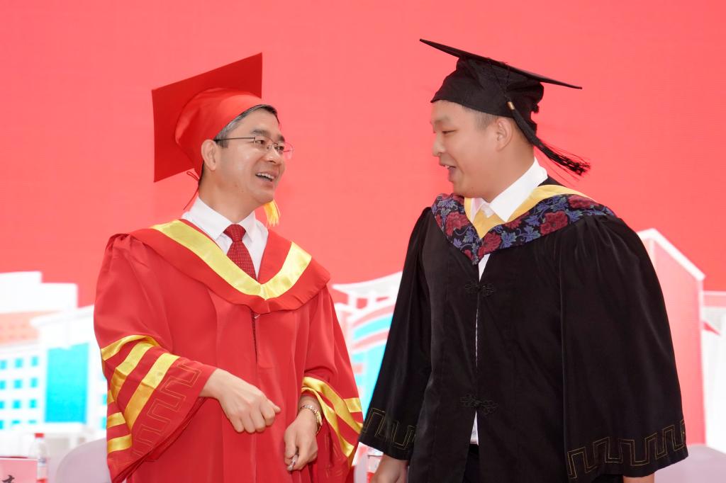 “亲爱的同学们,愿你们启航新征程,奋进新时代,带着今日荣光,带着母校的祝福,走向更美好的未来,祝同学们前程似锦,一路顺风。”党委书记黄涛教授激情澎湃的为毕业学子们送上祝福。