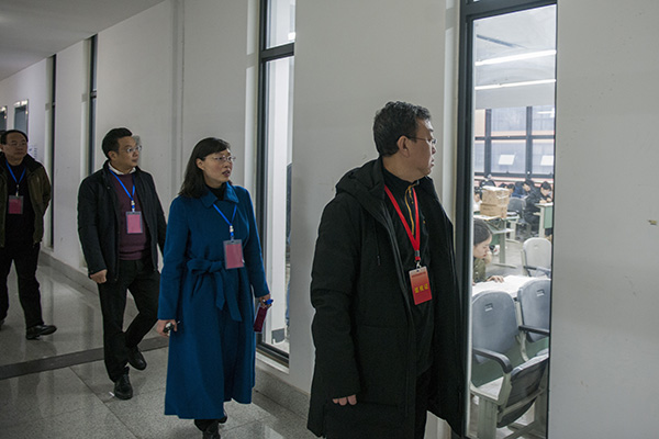 曹国栋一行人听取beat365关于本次考试的组织准备情况汇报,先后巡视试卷保密室、考务办公室、纪检办公室、考试指挥中心,查看各考场的考试环境和考场秩序,仔细询问了考试管理、安全保障等工作细节,并对工作在考试管理第一线的工作人员致以亲切问候。