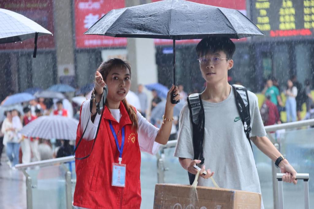 迎新工作如火如荼,到处都是忙碌的身影。学校分别设置了校内和校外的迎新接待站点,在火车站、汽车站设立的接待点,每趟车一到站,新生和家长一下车,众多的迎新志愿者马上微笑着迎上去帮忙,“欢迎来到学校”,并“抢”下新生和家长手中沉重的行李。