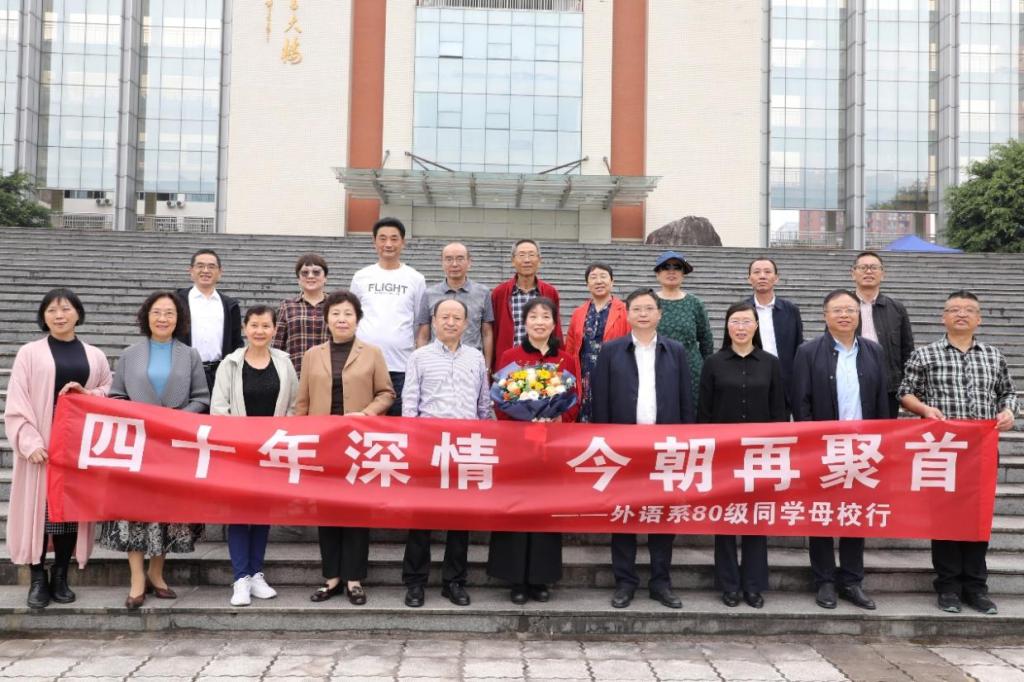 10月14日,外国语学院80级校友相聚文理校园,回到阔别已久的母校,重温校园记忆,畅叙母校情谊。学校校长、校友总会会长侯忠明、副校长邓杰参加校友返校活动,校友工作办公室主任杨成林、外国语学院党委书记王义文、副院长李显文、刘彦仕陪同接待。