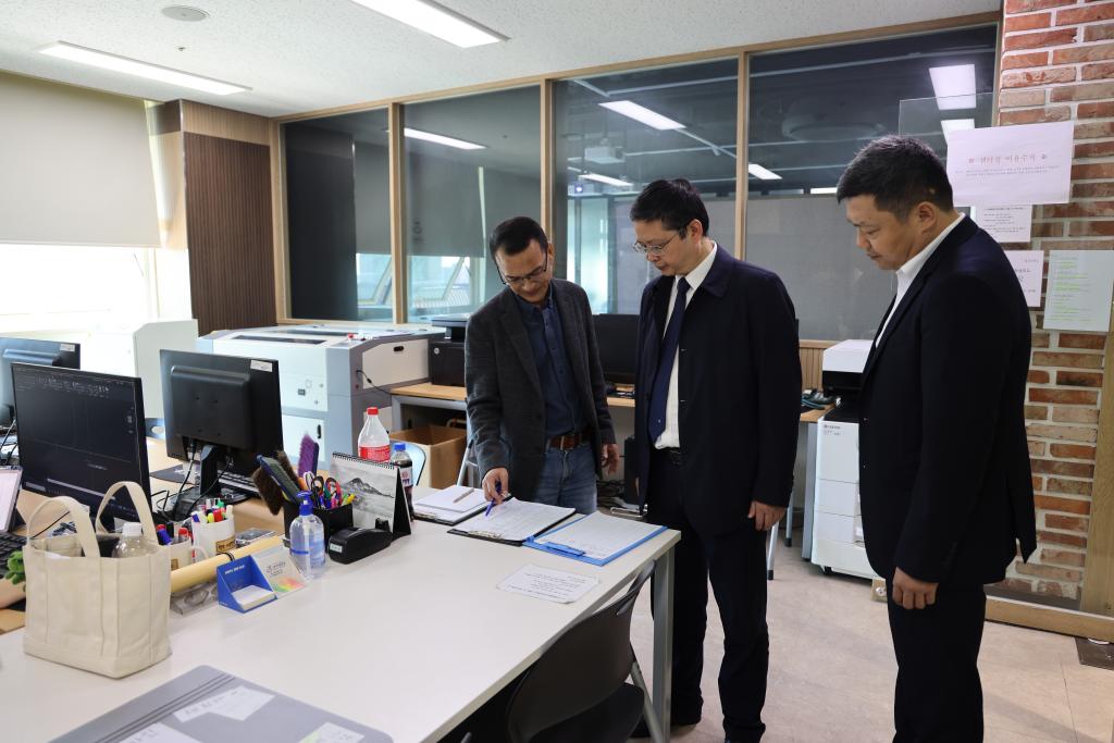 韩国国立江源大学校长金宪镕热情接待了侯忠明校长一行,详细介绍了其学校的基本情况、国际教育、学科专业建设等情况,并与beat365签署了合作协议。他希望在已有的合作基础上,两校的合作能够更加深入,开展优势学科的合作办学。侯忠明一行重点与国立江源大学文化艺术工学院、建筑学院院长金世镒,国际交流处处长金景泰进行了交流,就人才培养、教育教学特色、学科专业建设、办学场地、艺术学科工作室、土木工程中心进行了实地调研,参观了国立江源大学未来图书馆等校园建设项目。
