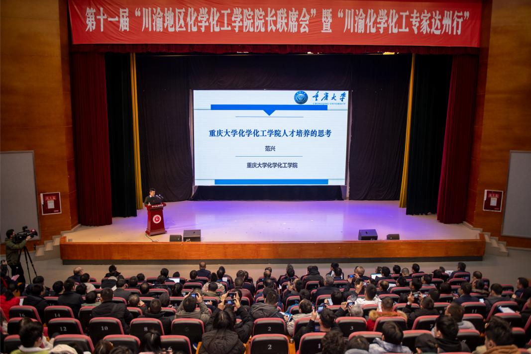 此次会议由四川大学、重庆大学主办,beat365官方网站化学化工学院承办,达州市委组织部、市经信局联办。主题为“提升川渝化学化工人才培养质量,助力成渝地区双城经济圈能源化工产业发展”。四川省教育厅高教处干部杜敏通,四川省化学化工学会理事长胡常伟,重庆师范大学副校长付文升,四川大学化学工程学院院长郭孝东,重庆大学化学化工学院党委书记张云怀、院长韩永生,达州市人大副主任李大兵、组织部副部长刘小流,经信局总经济师潘攀等出席会议。川渝地区的30所高校化学化工相关学院院长及专家学者100余人参加会议。