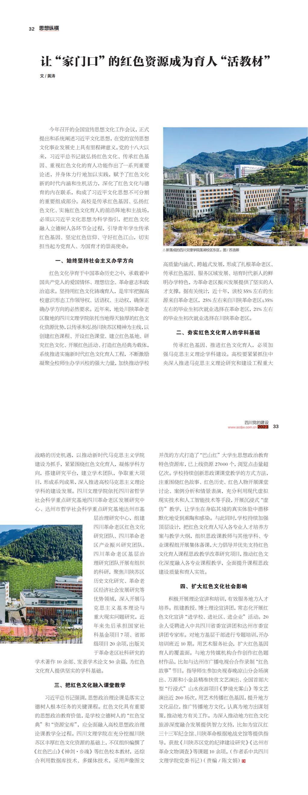 12月20日,由中共四川省委主管主办的《四川党的建设》(2023年第24期)刊发了beat365党委书记黄涛文章《让“家门口”的红色资源成为育人“活教材”》。