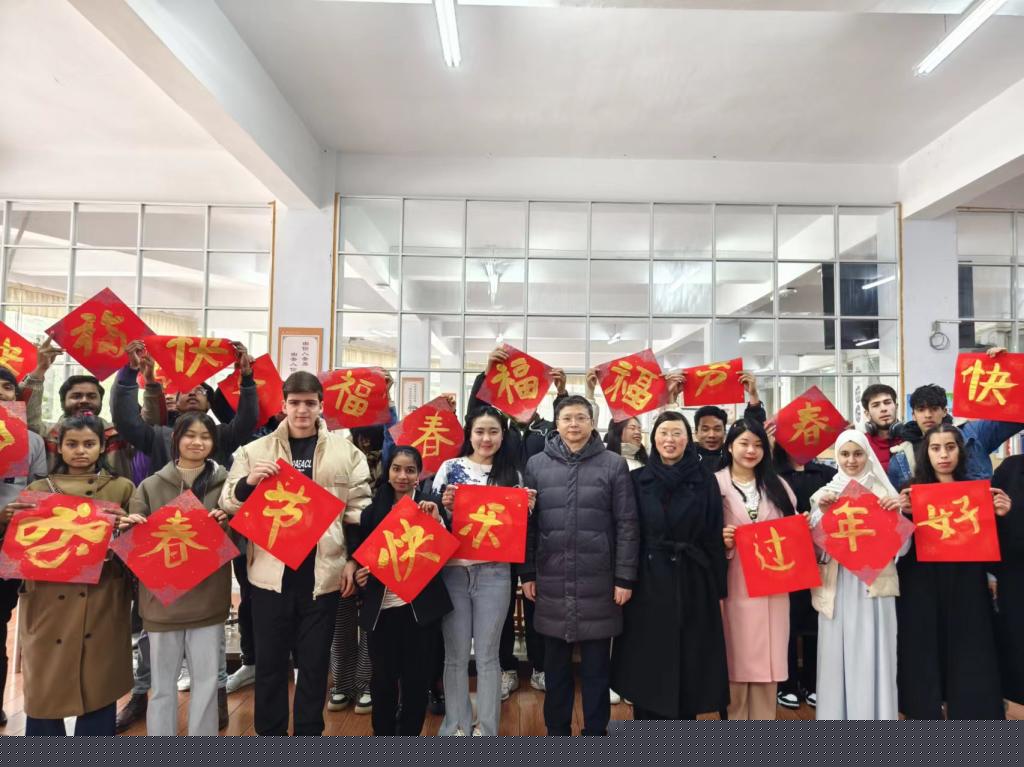 为进一步丰富在校留学生的寒假生活,让他们深度体验中国传统文化,度过一个欢乐、祥和的新春佳节,2月7日,校长侯忠明、副校长邓杰、国际交流合作处、学生工作部、保卫处、财经管理学院、人工智能与大数据学院负责人与来自孟加拉国、摩洛哥、俄罗斯、老挝、也门、乌兹别克斯坦、塔吉克斯坦、以及斯里兰卡的40余名留学生欢聚一堂,体验中国传统民俗文化,喜迎中国农历年。